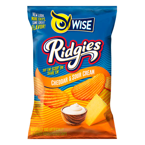 WISE RIDGIES CHEDDAR SOUR CREAM FLAVORED RIDGED POTATO CHIPS / 3.25 OZ